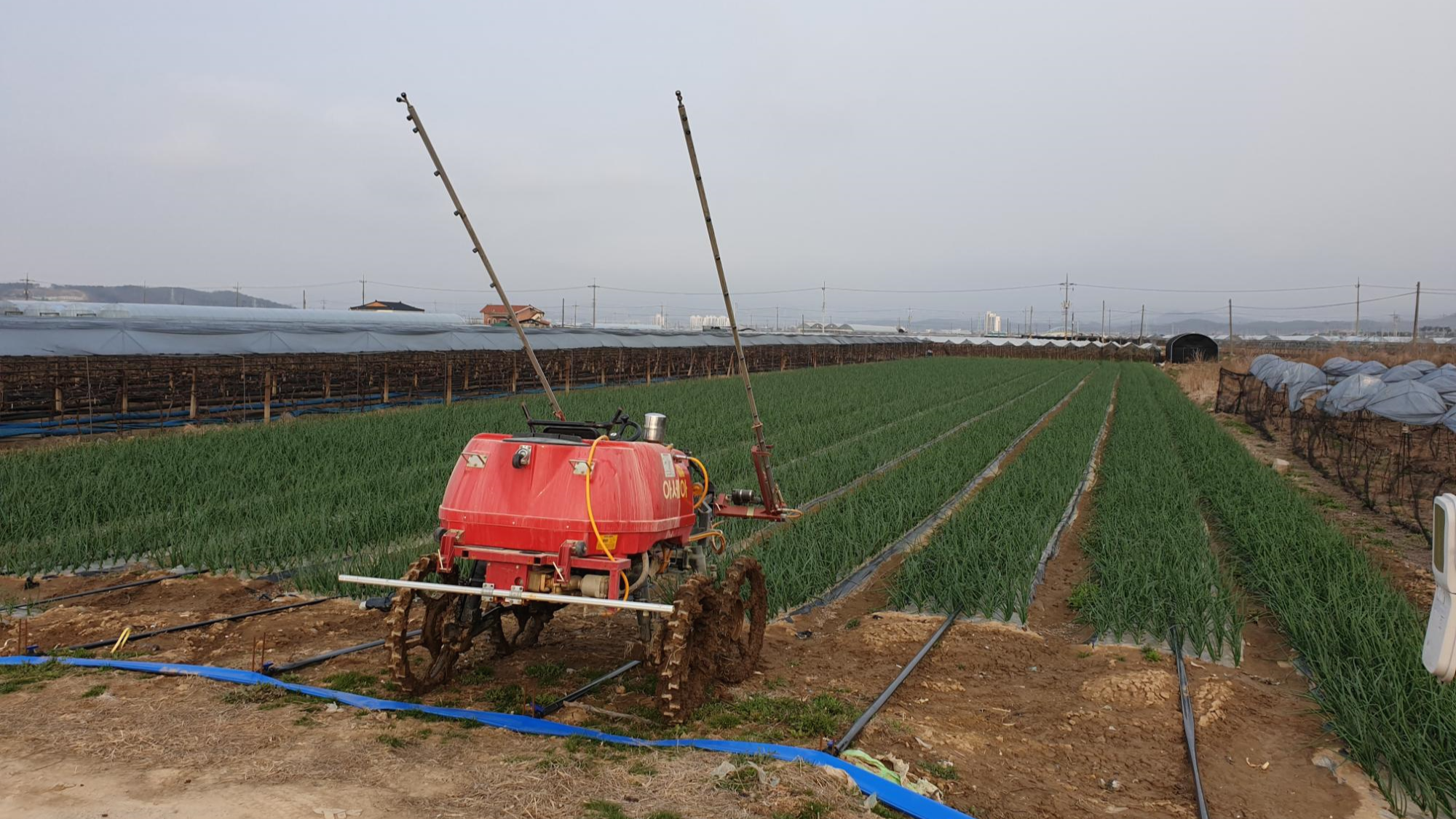 아세아텍 붐스프레이어를 이용해 양파 농약 방제를 합니다.