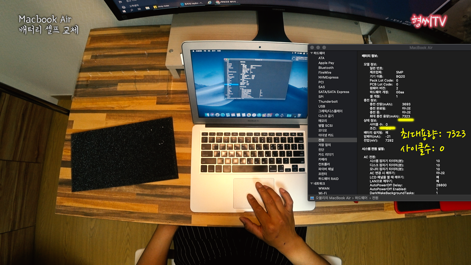 배터리 교체 후 최대용량 7323 / 사이클 수 0